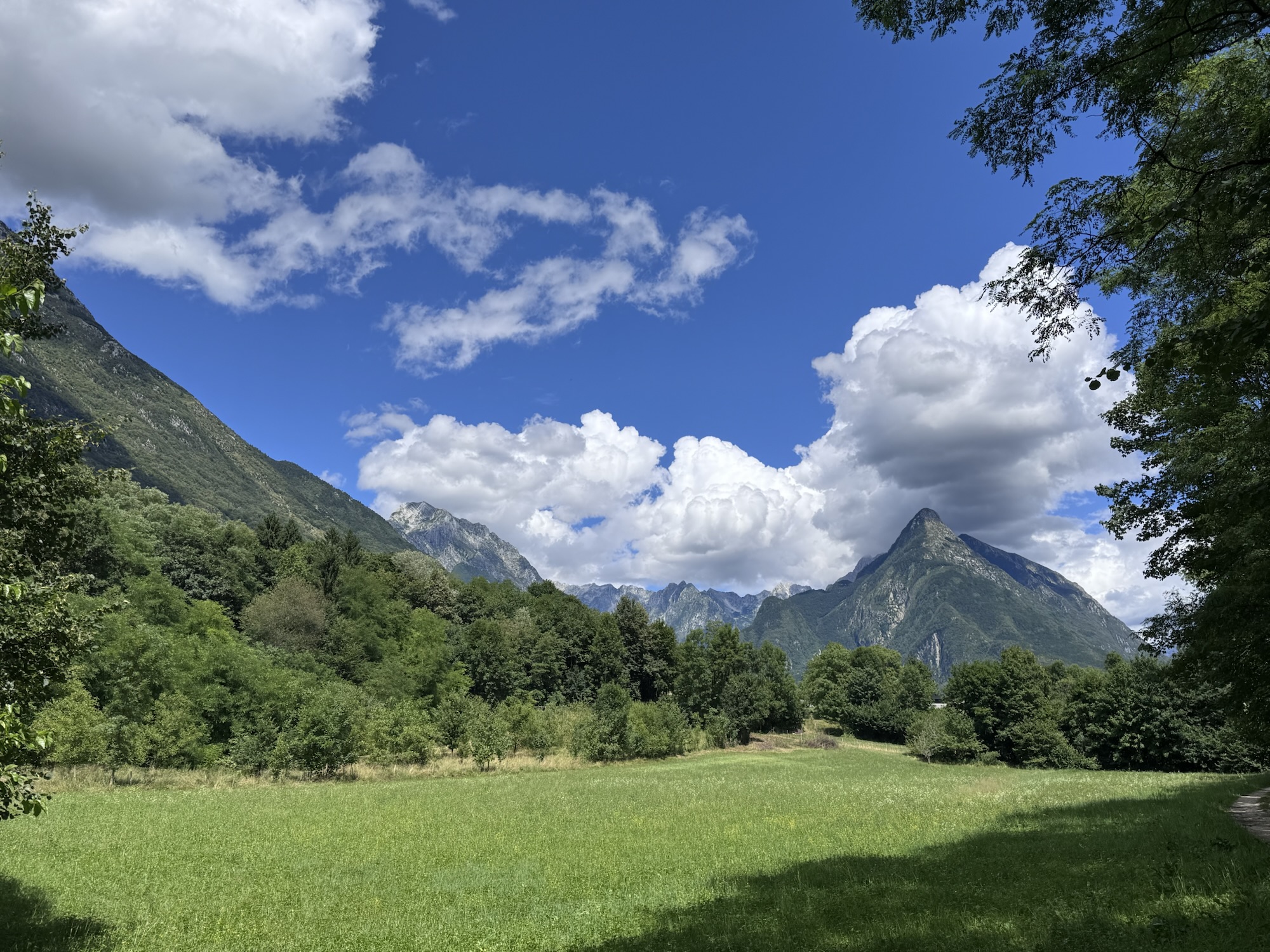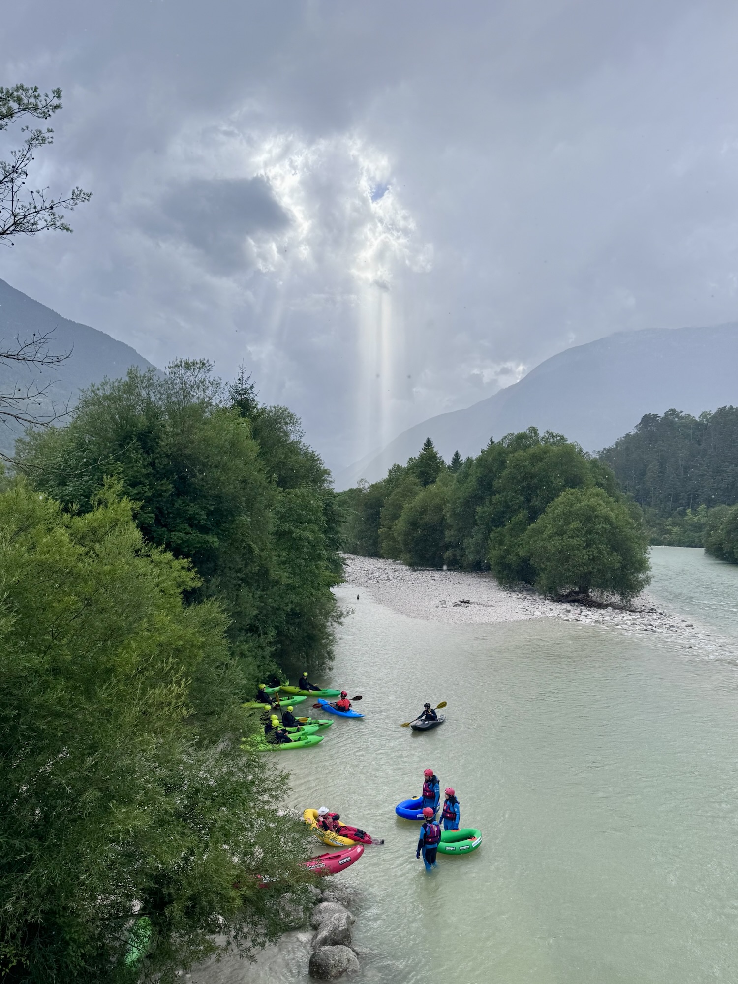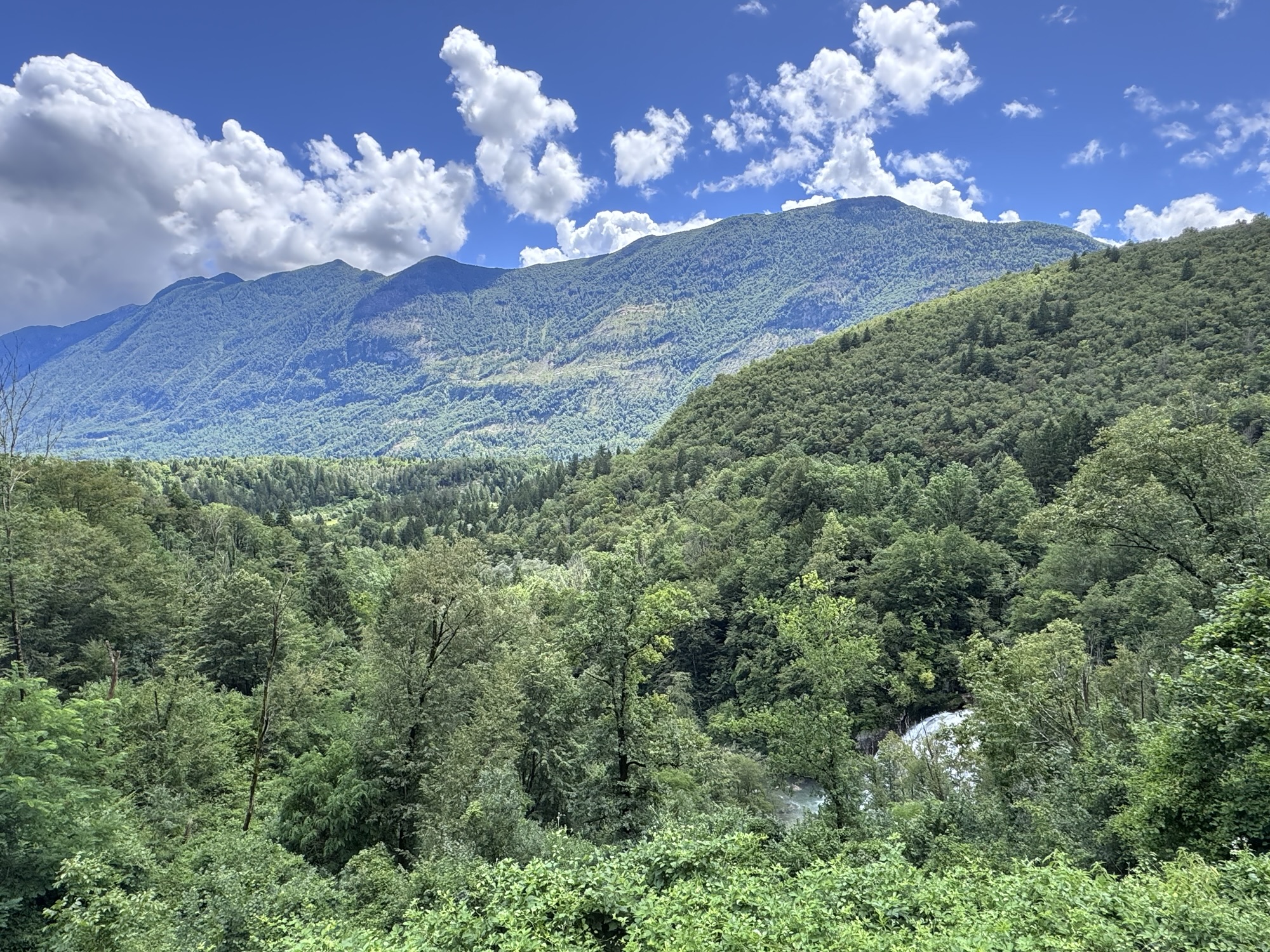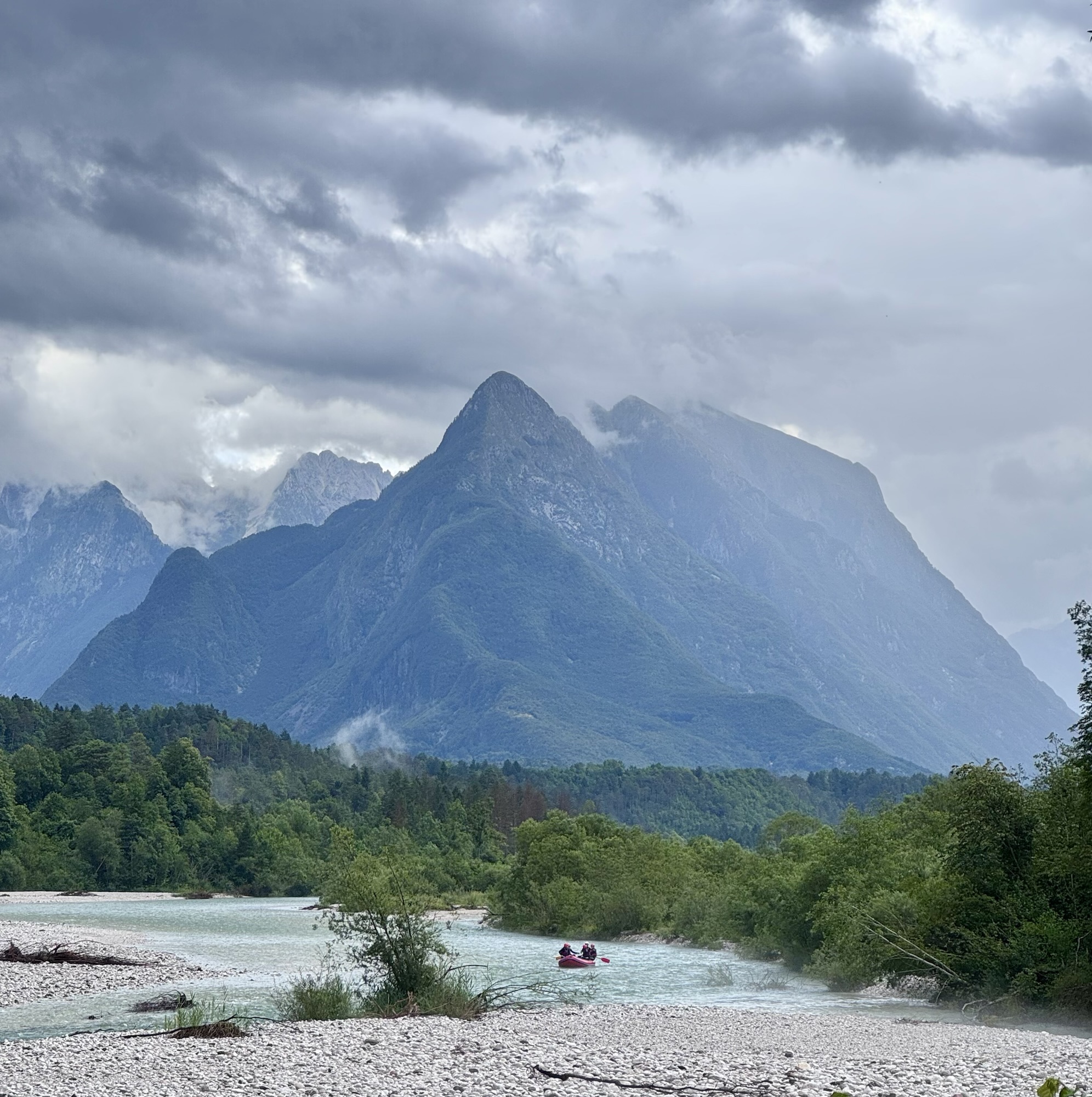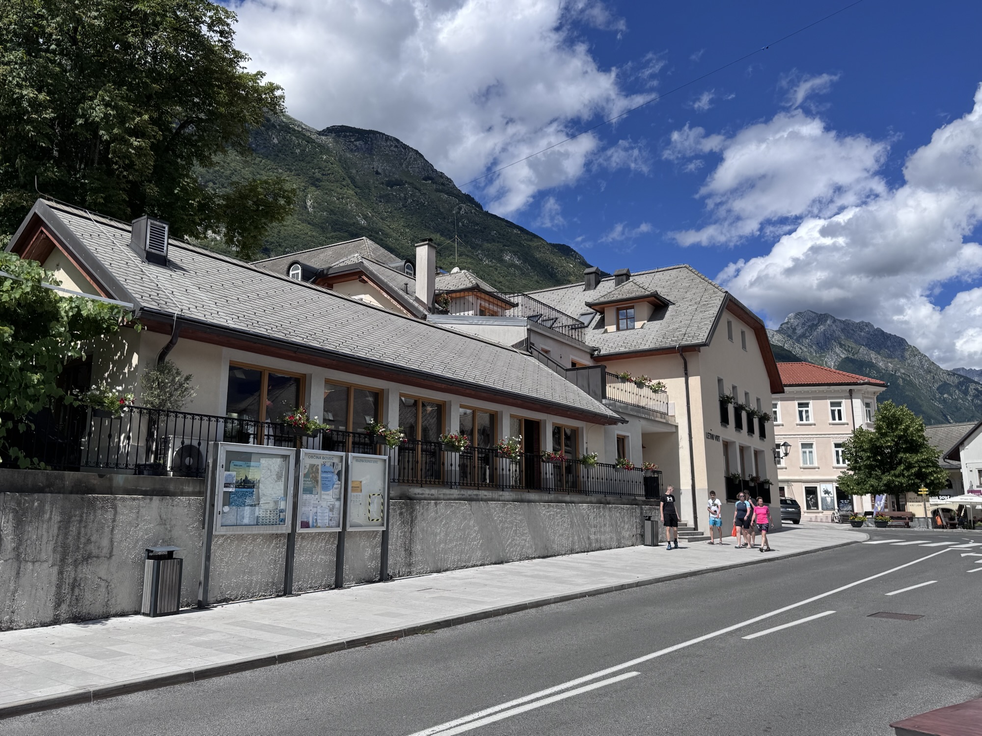 Am nächsten Morgen sah es immer noch so aus, als würde es den ganzen Tag regnen, aber irgendwann kam die Sonne und wir sind dann zu einer Loop Wanderung aufgebrochen. Als erstes wollten wir uns den Virje Wasserfall anschauen, dann in die kleine Stadt Bovec und danach auf der anderen Seite des Flusses zurück zum Campingplatz. Zusammen knapp ~19 Kilometer.