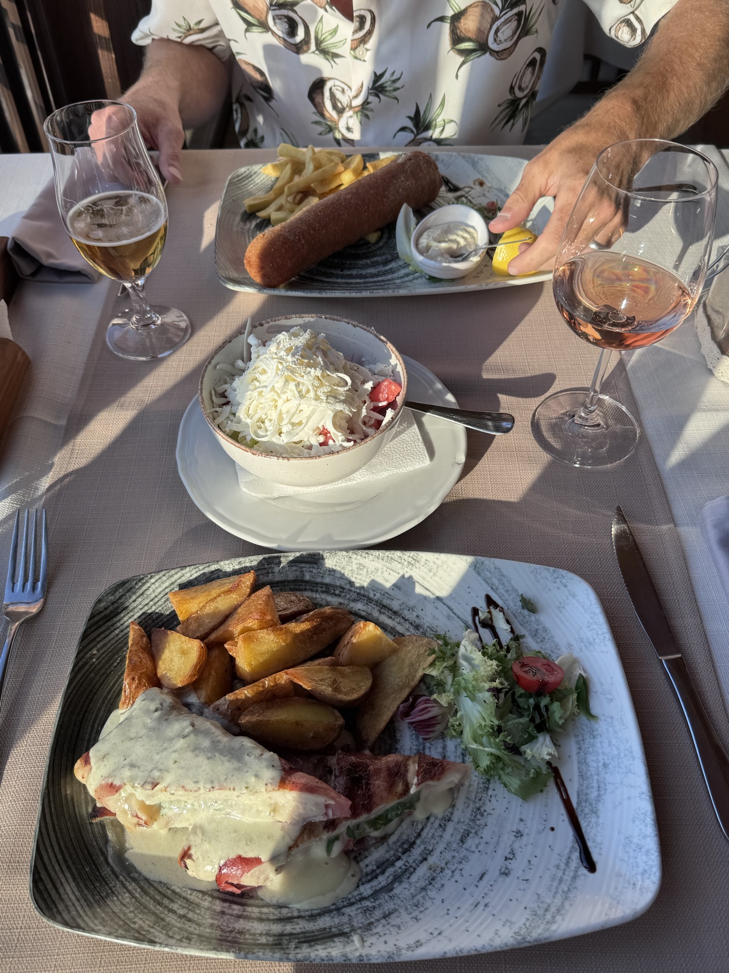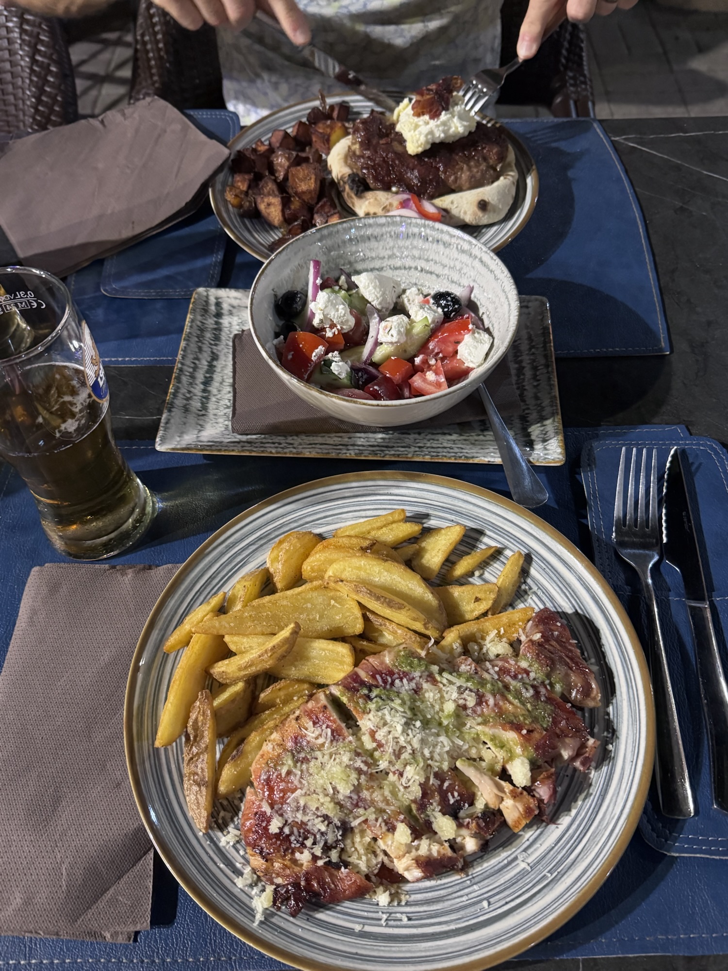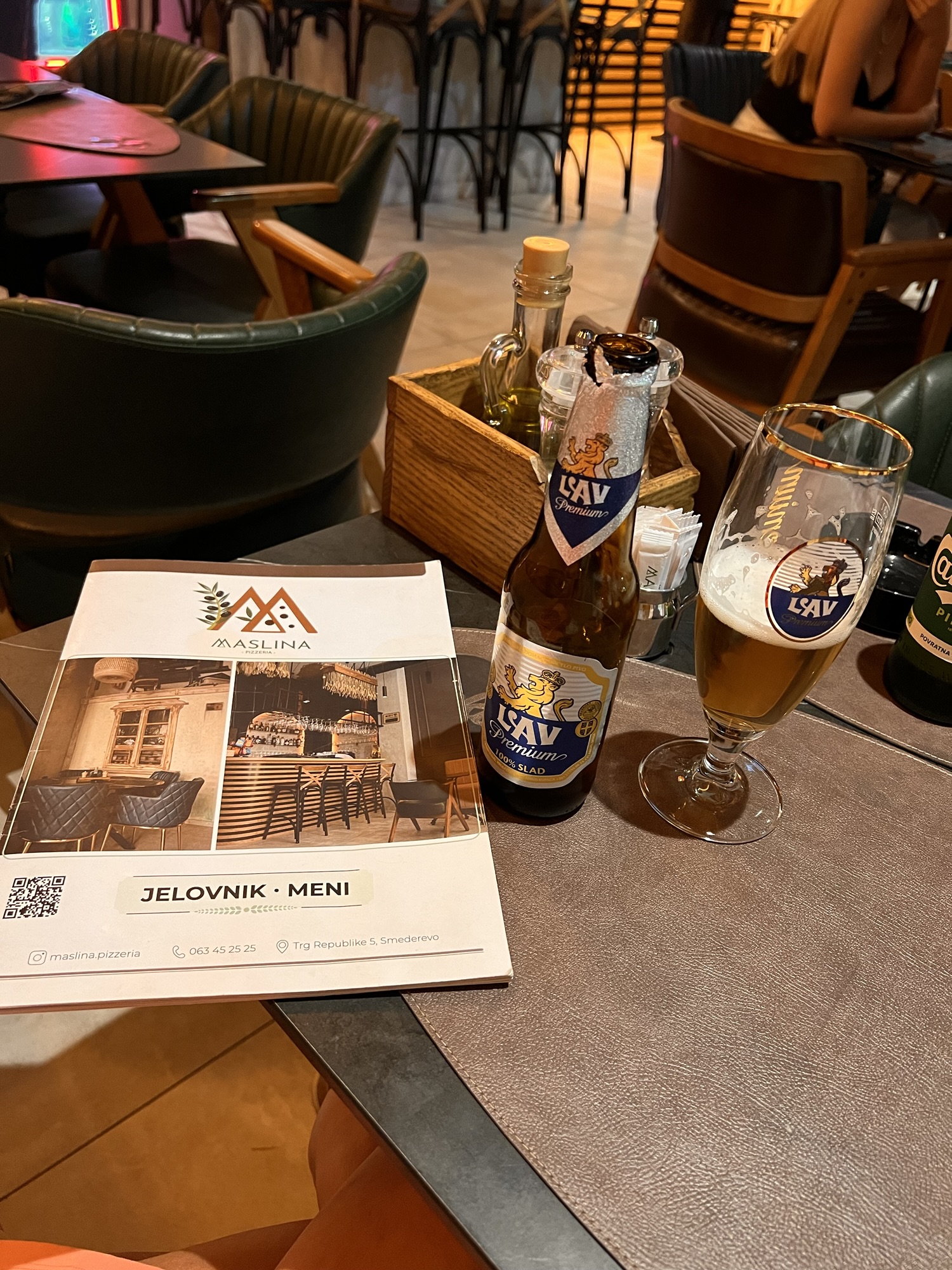 Nachdem wir uns dann frisch gemacht haben, war es bereits 22 Uhr. Wir stiefelten sofort zu dem leckeren Restaurant vom letzten Jahr – „Maslina“, übersetzt Olive und aßen beide wieder hervorragendes Essen und natürlich gab es ein serbisches Luv Bier dazu. Leider waren wir viel zu müde diese tolle Atmosphäre, die diese Stadt bietet, länger zu genießen. Es war Samstag Abend, angenehm warm und die Innenstadt war gefüllt mit jung und alt. Die Damenwelt, egal welchen Alters, mit ihren laaangen Beinen waren von Kopf bis Fuß gestylt. Kleine Kinder fuhren mit dem Roller um die Wette und die serbische Männerwelt philosophierten meistens bei einer Zigarette über Fußball, Basketball, Nikola Jokic oder doch Novak Djokovic? Man(n) weiß es nicht 😁.