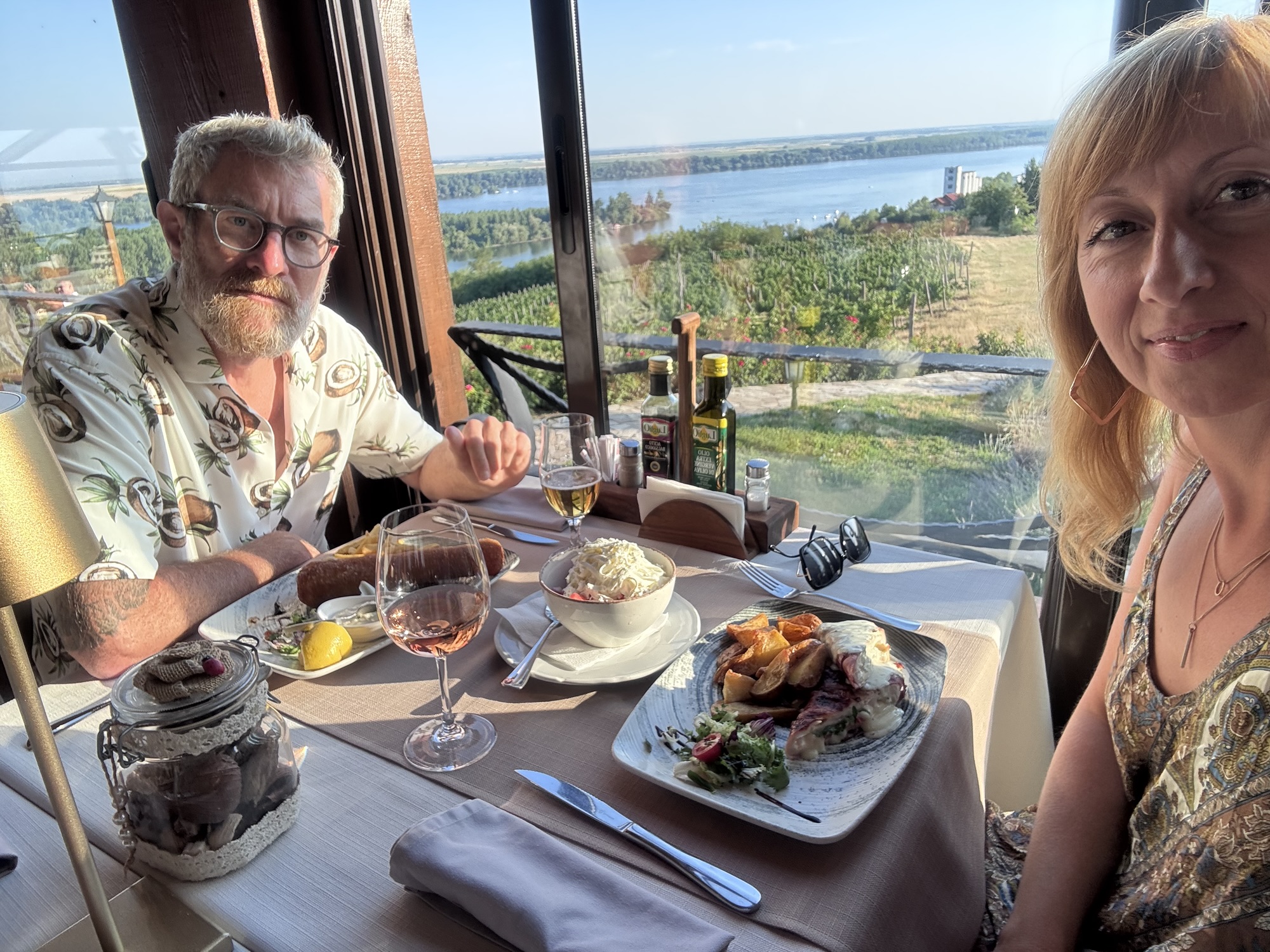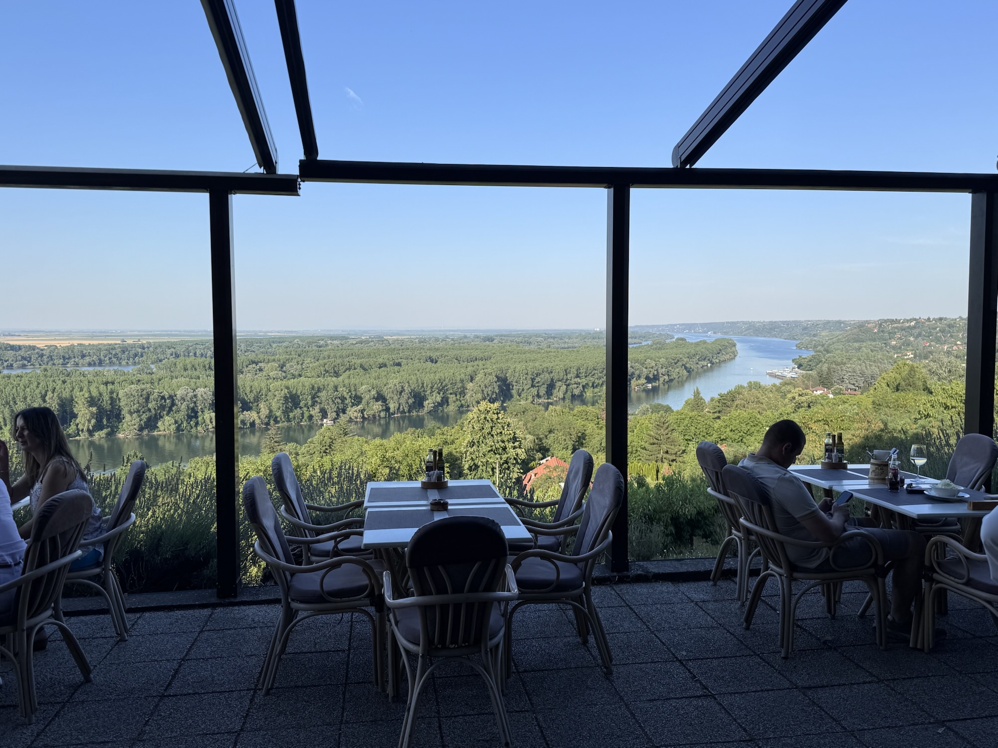 Am nächsten Tag sind wir nach Grocka zum Restaurant Vinogradi gefahren, das eine tolle Aussicht über die Donau bietet. Hier waren wir letztes Jahr, auch um unserer lieben Freundin Vera, die auch gleichzeitig unsere Chefin ist, eine Kiste Wein zu kaufen. Das ist/war definitiv kein Bestechungsversuch für die lange(n) Reise(n) die sie uns jedes Jahr ermöglicht, seitdem wir bei ihr arbeiten. Nein, bestechen muss bzw. kann man sie gar nicht. Sie hat einfach ein riesiges Herz 💚 und ist eine der sozialsten Menschen, die wir überhaupt kennen. Noch einmal herzlichen Dank liebe Vera und auch an Julian – unser Junior-Chef – für die Möglichkeit diese Reise zu machen 😘🙏🏻.