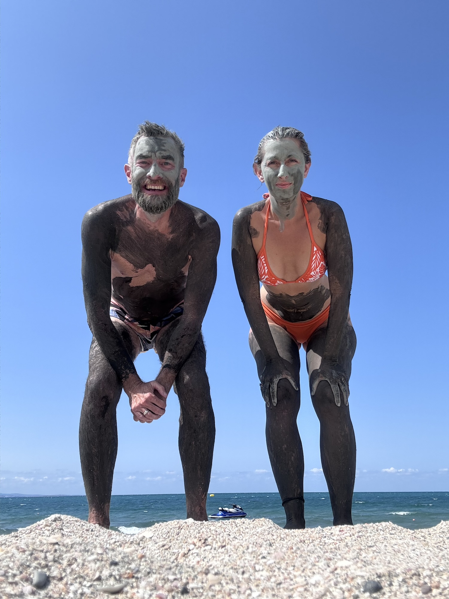 Sie haben uns viel gezeigt, ihre Drahtesel für Ausflüge ins Stadtzentrum geliehen und uns in die geruchsintensive Welt des Heilschlammbadens eingeführt. Zur ersten Portion wurden wir von den beiden zum einsuhlen eingeladen 💚. Ein absolutes Naturprodukt aus der Region. Es fühlt sich beim einbalsamieren an, als wäre man in ein Schwefelbad reingehüpft oder man hat sich in eine Badewanne voller fauler Eier gelegt 😂. Das Prozedere haben wir ganze 3 Tage hintereinander gemacht. Für die weiteren Portionen haben wir beim selbst ernannten Antonio Banderas die nötigen Geruchsutensilien geholt. Diese wurden von ihm direkt an der Quelle, dem Pomorie-See abgebaut.