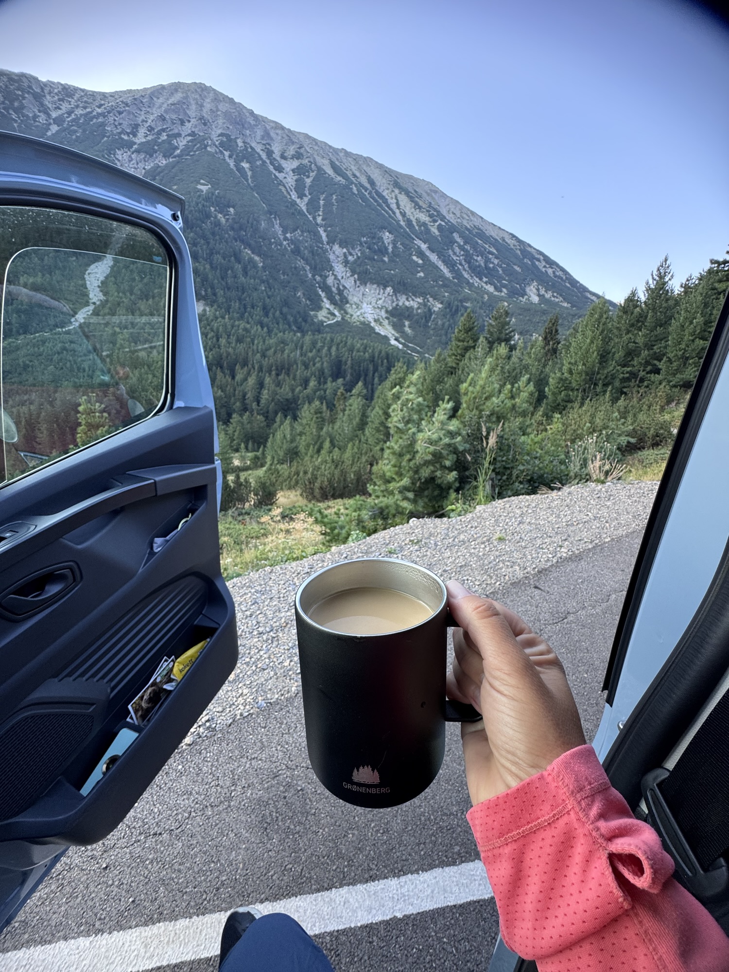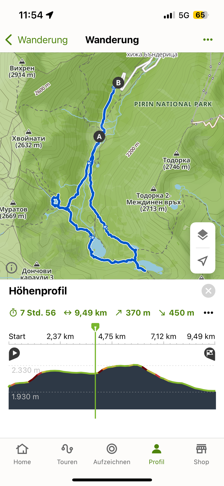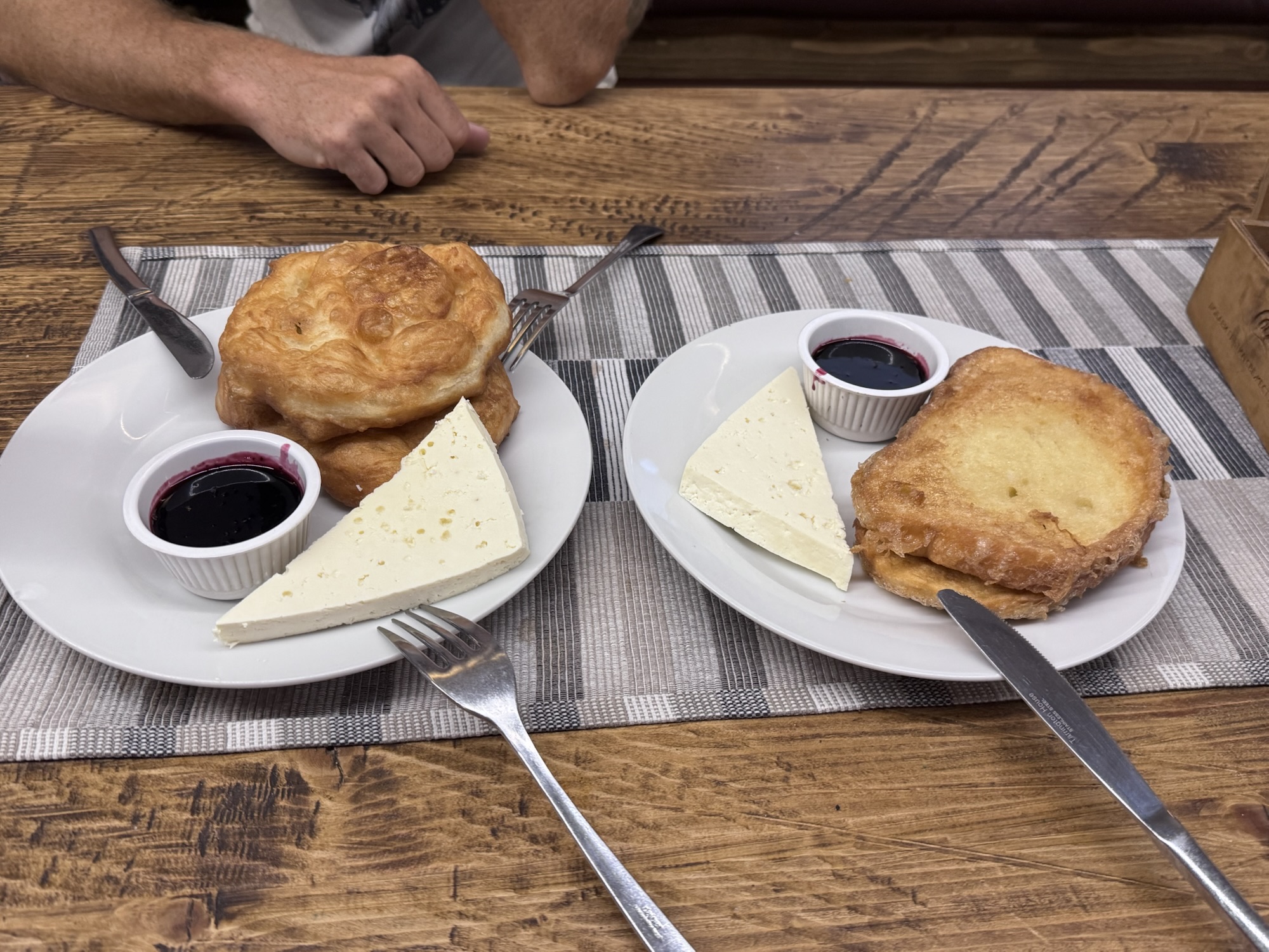 Das erste Mal, seitdem wir auf unserem Road Trip sind, stellten wir uns den Wecker, für 6:00 Uhr 😜. Wir wollten für unsere Verhältnisse früh los, damit wir mit dem Auto bis zu der Wichren Hütte fahren können und einen der wenigen regulären Parkplätze bekommen. Und tatsächlich haben wir den letzten „offiziellen“ Parkplatz ergattert. Nach einem Käffchen wollten wir uns in der Hütte ein Frühstück gönnen, da wir am Tag davor gefragt hatten, ob sie Mekizi haben. Ja, hatten sie, aber das die so teuer sind, haben sie nicht erwähnt 😂. Mekizi ist ein typisches bulgarisches Frühstück aus Hefeteig, das in Fett frittiert wird, so ähnlich wie der Langosch. Im Vergleich waren sie mindestens drei mal so teuer wie sonst. Lecker waren sie trotzdem 😋.