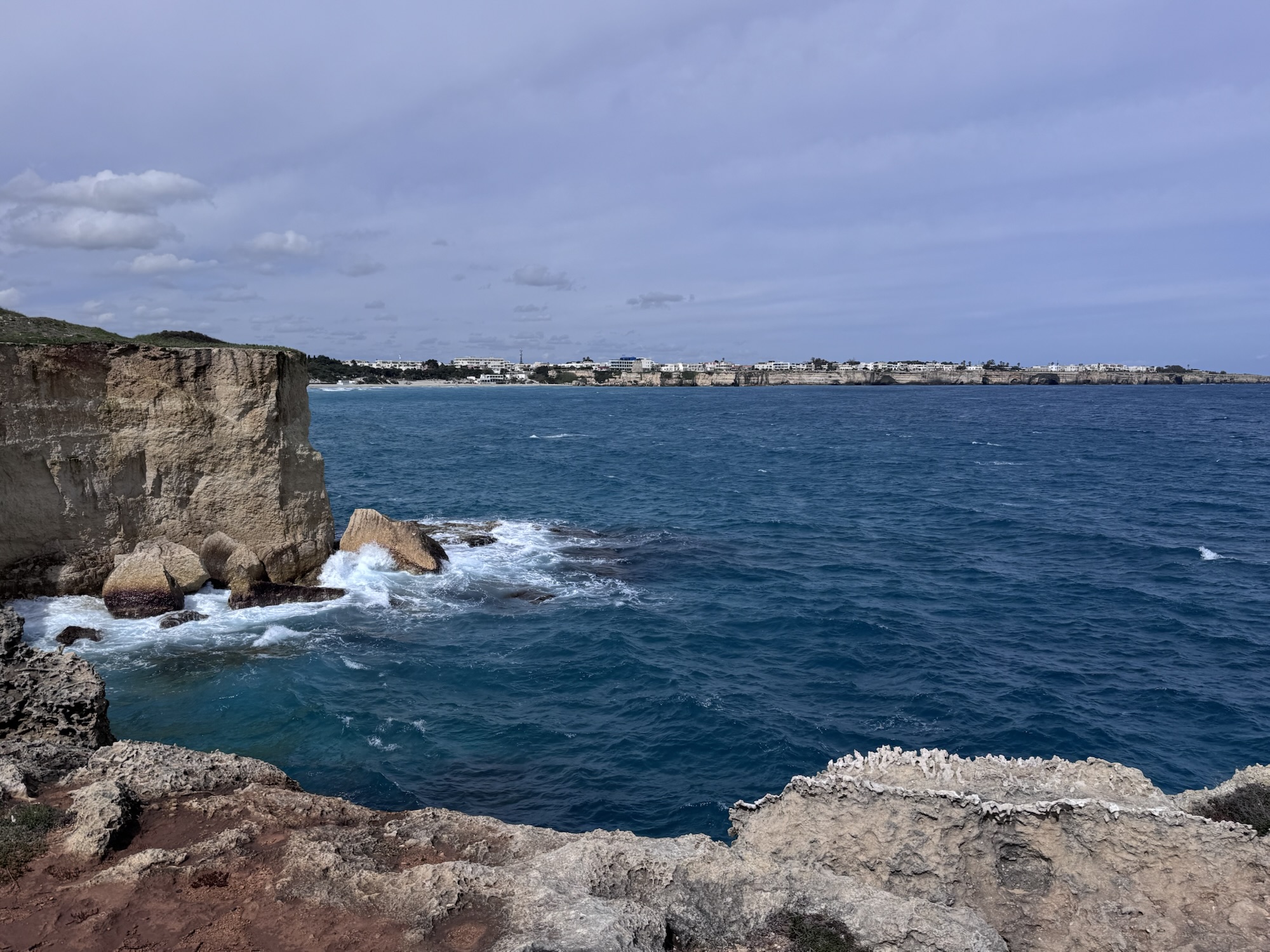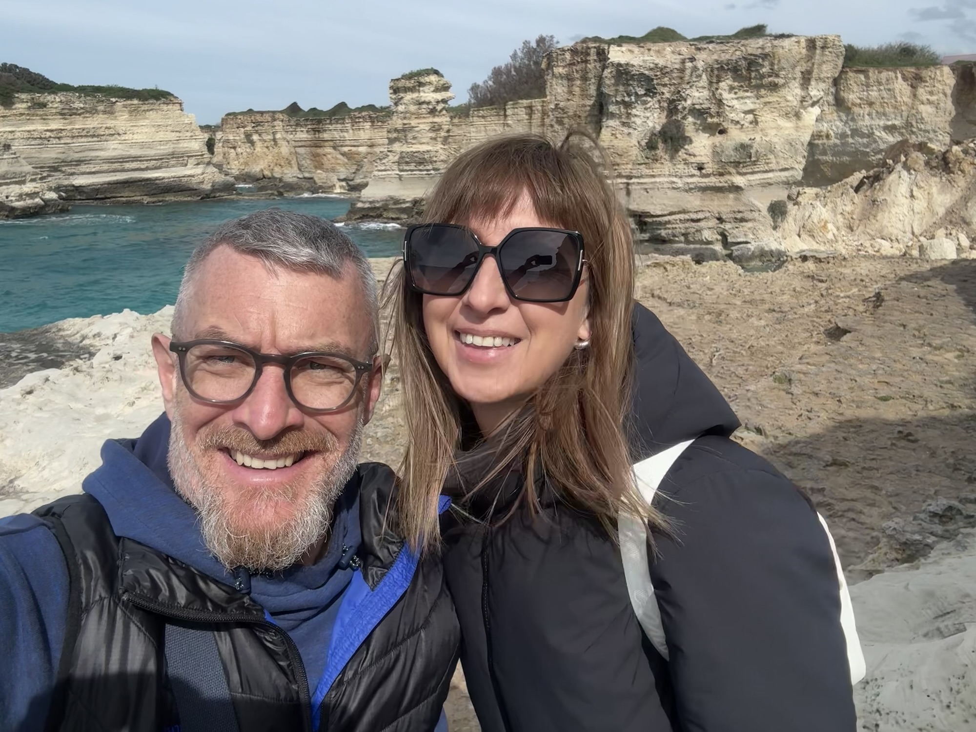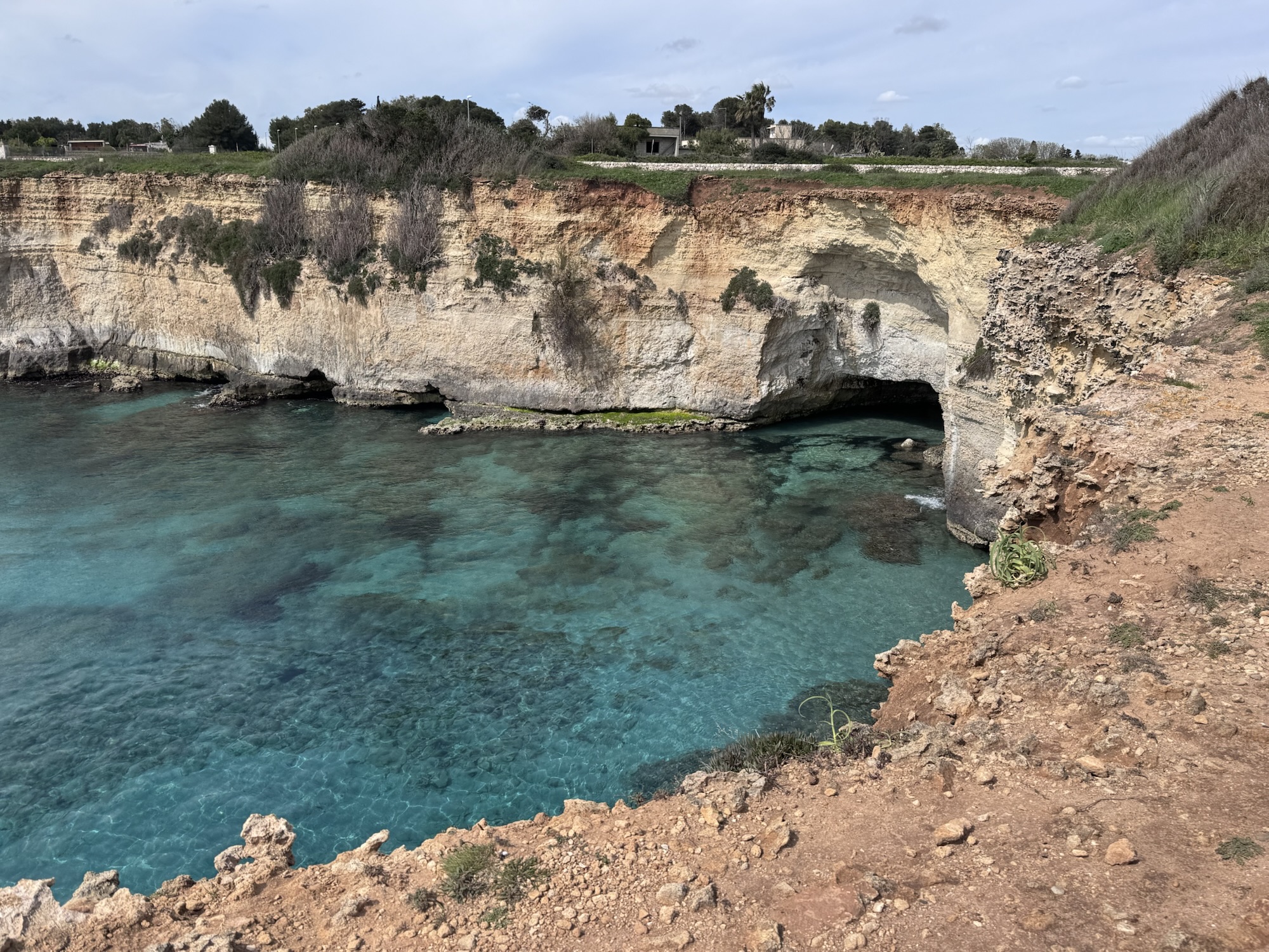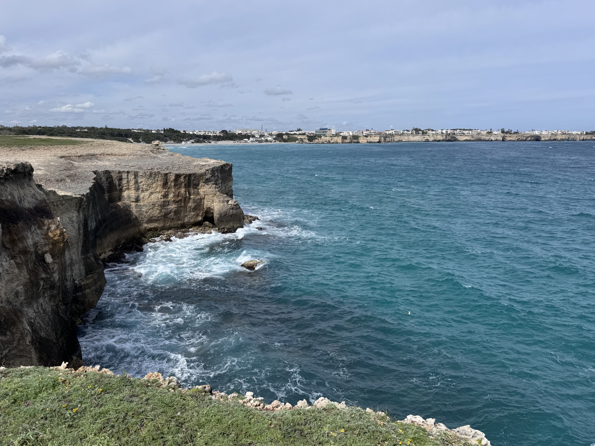 Nach Lecce wollen wir Zeit am Meer verbringen und steuern die Ostküste Apuliens an. Als erstes fahren wir zu der schönen Kalkstein Formation von Sant‘Andrea. Dort angekommen mussten wir feststellen, dass der schöne Felsbogen, den man auf den Fotos im Internet findet, nicht mehr da ist.