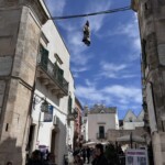 Hier stoßen wir auf eine andere Tradition in Apulien – die hängenden Puppen. Sie sind ein traditioneller Brauch in der Fastenzeit vor Ostern. Die als alte Frauen, mit alten Lumpen gekleideten Puppen sollen das böse austreiben und hängen während der 40-tägigen Fastenzeit bis Ostern und werden am Ende der Zeit verbrannt.