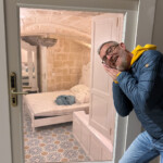 Eine Sache muss man in Apulien gut beachten, wenn man nach einer Unterkunft im Internet sucht – sobald man „mit eigenem Zugang“ liest, muss man davon ausgehen, dass die Unterkunft im Erdgeschoss ist und man in der Regel direkt vor dem Bett steht, sobald man durch die Tür geht. Ebenso ist es in der Regel die einzige Frischluftzufuhr. So kann der Rutzel in Ruhe rein glotzen, wenn die Tür offen steht oder man den Vorhang zur Seite zieht 😅.