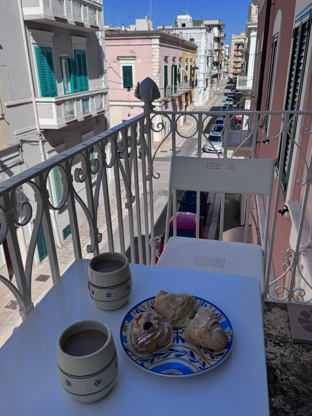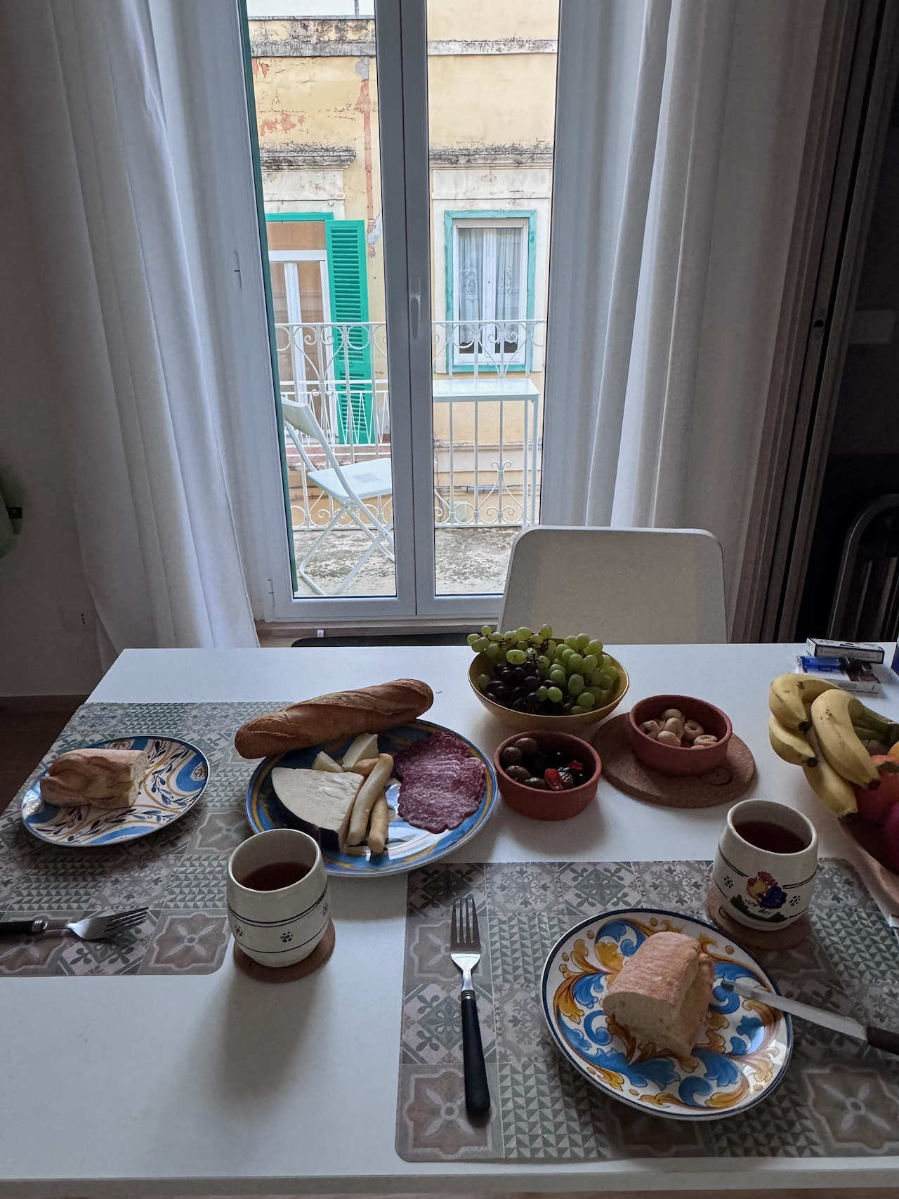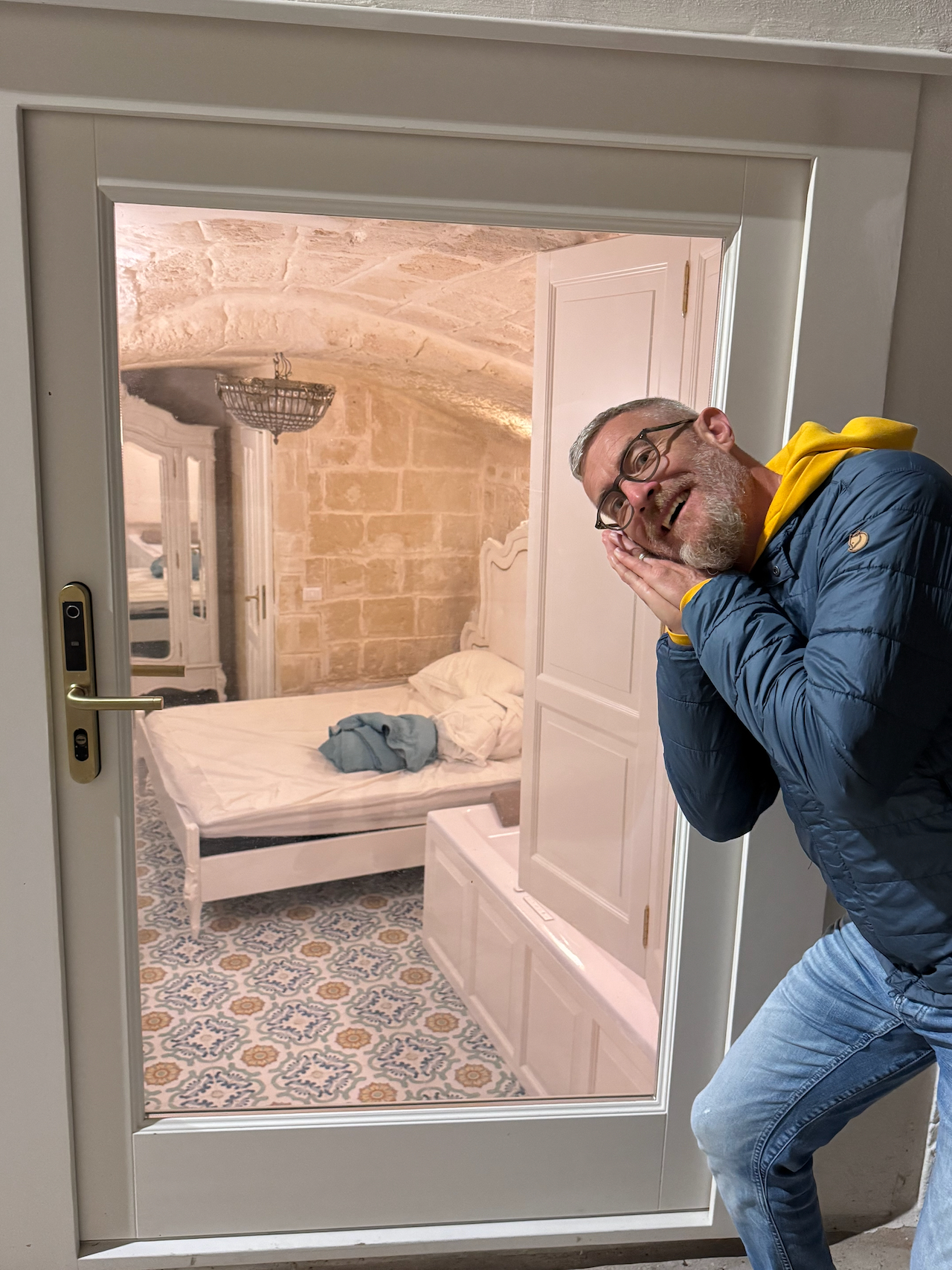 Eine Sache muss man in Apulien gut beachten, wenn man nach einer Unterkunft im Internet sucht – sobald man „mit eigenem Zugang“ liest, muss man davon ausgehen, dass die Unterkunft im Erdgeschoss ist und man in der Regel direkt vor dem Bett steht, sobald man durch die Tür geht. Ebenso ist es in der Regel die einzige Frischluftzufuhr. So kann der Rutzel in Ruhe rein glotzen, wenn die Tür offen steht oder man den Vorhang zur Seite zieht 😅.