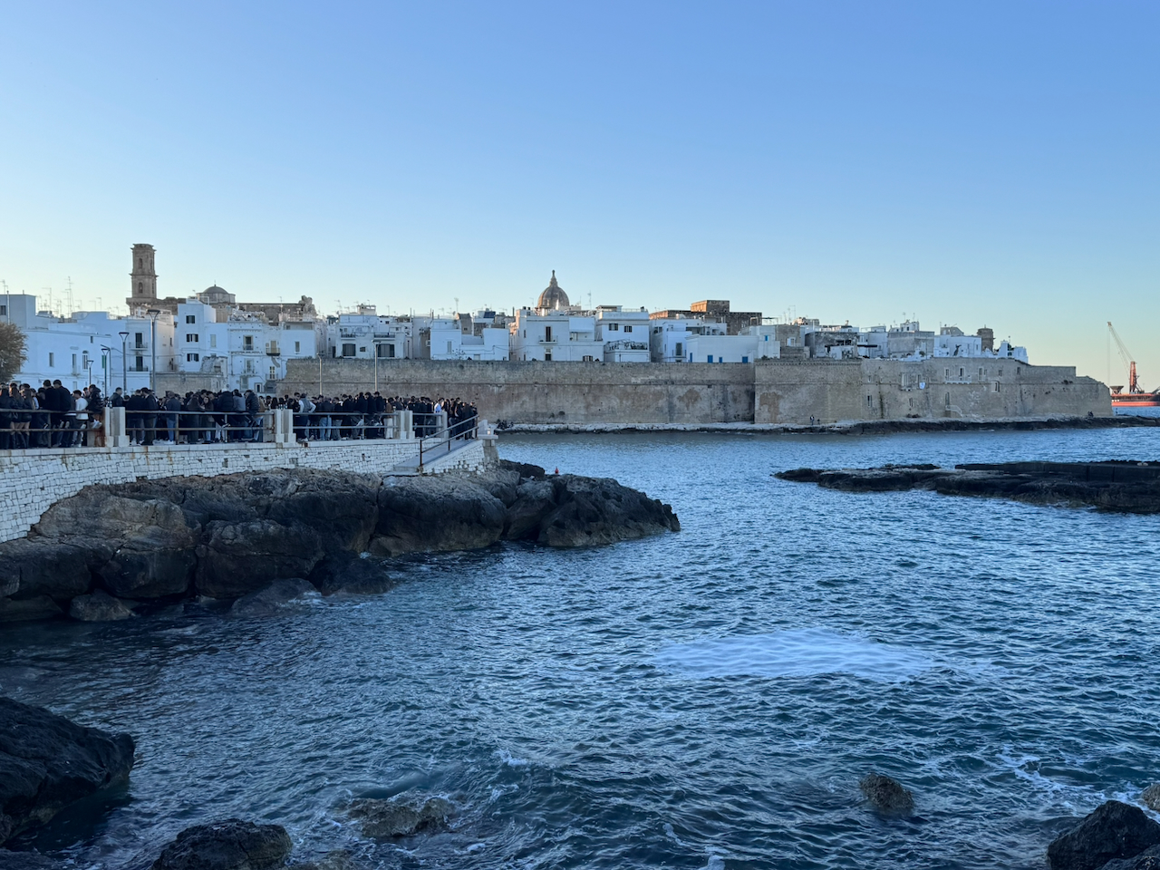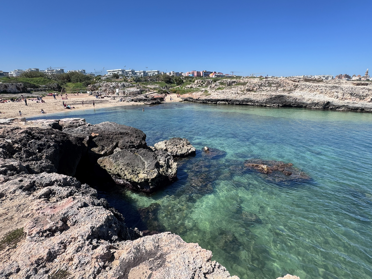 Monopoli punktet mit vielen schönen Badebuchten, gutem Essen und einer schöne Altstadt. Die imposanteste Bucht findet man in dem 9 Kilometer entfernten Ort Polignano a Mare, zu lesen in dem nächsten Step.